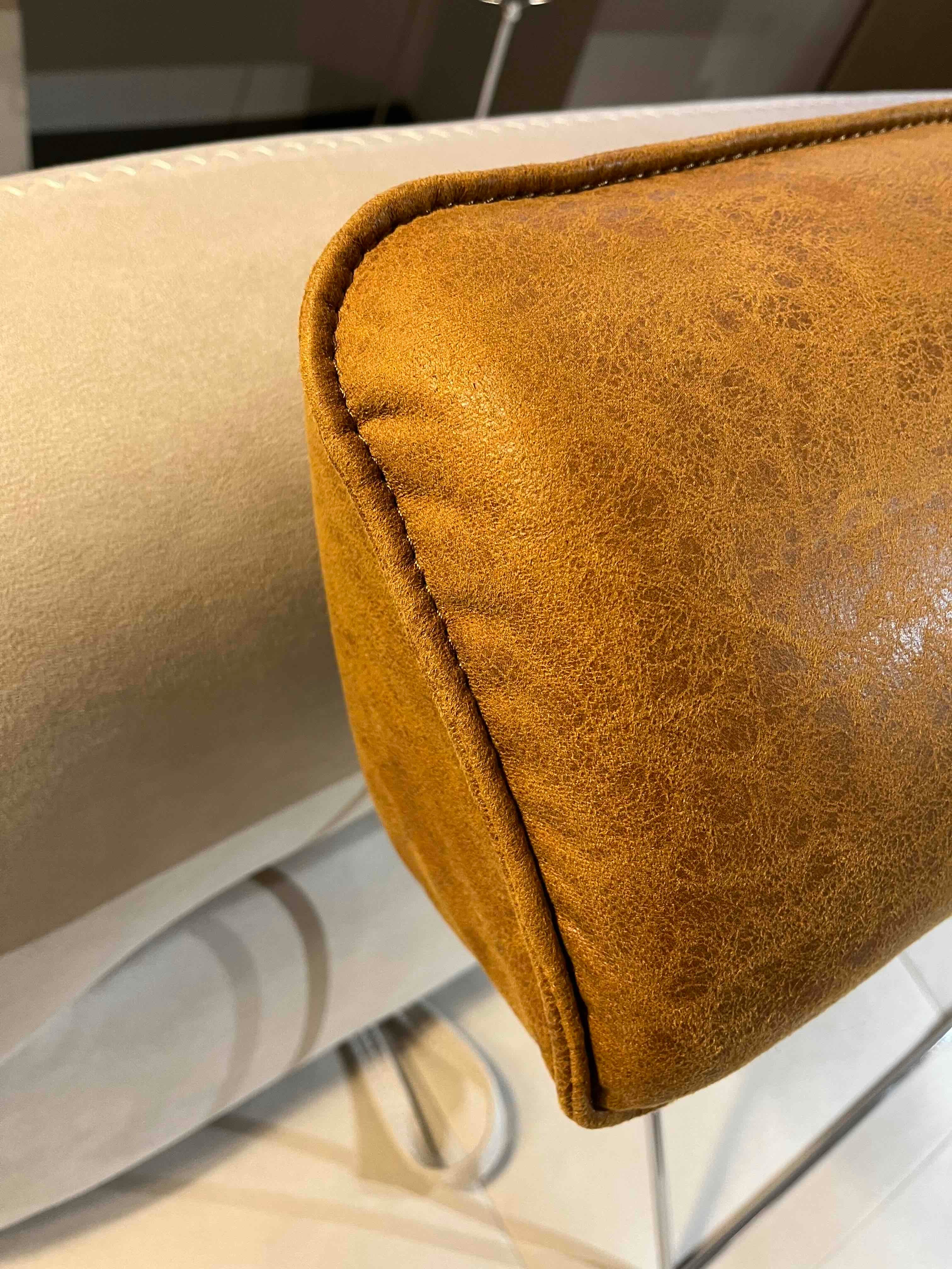 生地は革でも布でもない新素材、LEATHERTEX®。深みのあるアニリンレザーのような雰囲気が上質でハイセンスな印象の生地。しなやかで柔らかい肌触りです。